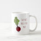 Mug with a smiling, beet, cartoon character. The words can be customised.