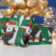 Festive Black/Tan/White Christmas Holiday Bernedoodle Mountain Dog dressed as a christmas elf, snowy background. Cute green christmas wrapping paper for bernedoodle lovers!