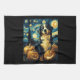Cute Bernese mountain Dog Halloween Jack O Lantern Pumpkin Face Starry Night Van Gogh Style