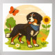 Cute Bernese Mountain Dog with Sunflower & Butterf Poster