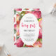 This berry themed first birthday invitation features a pattern of watercolor strawberries in an oval frame around the text. The words "berry first" appear in decorative red handwriting script. Add your little one's name in playful hand-printing font and the party details in sans serif. The back of the card features a coordinating watercolor strawberry pattern. An ideal theme for a summer first birthday party!