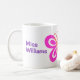 Beautiful personalised mug with your favourite teacher's name in purple next to a pink and peach butterfly. Customise with your own quote on the right side or leave it as "the best teachers stay forever in your heart" in teal for the world's best teacher during Teacher Appreciation Week or for End of Year. Pretty gift for a preschool or elementary teacher who likes butterflies. A lovely custom present for a teacher birthday.