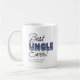 Treat an uncle to this personalised coffee mug featuring the saying "best uncle ever" in a elegant script & bold blue bubble font, and the kids names underneath.