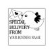 This "Special Delivery From" rubber stamp features a packaging message with a bird and custom business name.