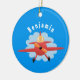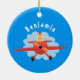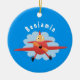 Cute bird flying red aeroplane cartoon illustratio ceramic ornament