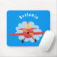 Cute bird flying red aeroplane cartoon illustratio mouse pad