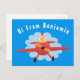 Cute bird flying red aeroplane cartoon illustratio postcard