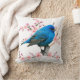 Cute bird indigo bunting on cherry blossom cushion