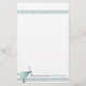Cute little blue and green bird holding a kitchen whisk in its beak with decorative borders, perfect recipe stationery or dinner plate menu stationery for a bakery or home baking business, personal or private chef, or other food, cooking, or culinary business.