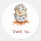 Adorable thank you sticker with an illustration of a bird hatching from it's egg. Great addition for your baby shower stationery. Illustrated and designed by Patricia Alvarez.
