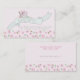 Pink Diaper Raffle enclosure card with a cute little bird sitting on a mint green banner, hand lettered in whimsical typography with "Diaper Raffle". The design is bordered with ditsy doodle style pink flowers and has a sweet poem to convey your book request. The back of the insert card can be personalised with your baby shower details or other message. A gentle design for a girl baby shower and a perfect match for my little bunny invitations.