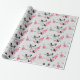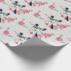 Cute Birds Black Grey Pink Flowers Wrapping Paper