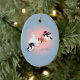 Cute little magpies with Christmas present and tree. Beautiful Christmas ornament which can be personalised with your own greeting text. Original design by Ruxique.