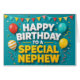 Celebrate your nephew’s big day with this adorable birthday card featuring colourful balloons, confetti, streamers and a cheerful teal background. The playful design is perfect for boys of any age—whether he's turning 5 or 25. Inside, personalise your message to add a heartfelt note from his "favourite" aunt or uncle, a funny memory, or even a photo for a custom card he’ll love. It’s a fun and festive way to let him know just how special he is!