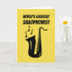 Cute Birthday greeting card for world's greatest saxophone player. Sax instrument with music notes logo. Cute card for saxophonist, sax player, music teacher, jazz musician, artist, dad, son, grandchild, band member, friend, co worker, boss etc. Also available in extra large big size.