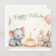 A little elephant, two sweet bunnies, and a candle on the cake—this is how a magical birthday begins, full of joy, friendship, and twinkling stars. A heartwarming moment to cherish and smile about.