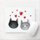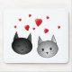 Cute Black and Grey Cats, with Hearts. Mouse Pad