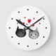 Cute Black and Grey Cats, with Hearts. Round Clock