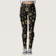 Cute Black and Old Gold Paw Print Pattern Printed Leggings