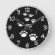 Cute Black And White Cartoon Pet Paw Trail Round Clock