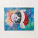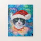Cute Black And White Cat Holiday Christmas Present Jigsaw Puzzle