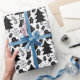 Cute Black and White Christmas Doodle Pattern Wrapping Paper