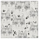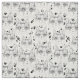 Cute black and white pattern composed of serene pen and ink illustrations of a serene cat.