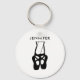 Personalised keychain with a black illustration of a ballet dancers slippers and her lower legs which are transparent allowing the colour of the background to show through. Ballerina is standing on her toes, en pointe.