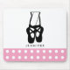 Mouse pad with a black illustration of a ballet dancers slippers and her lower legs which are transparent allowing the colour of the background to show through. Ballerina is standing on her toes, en pointe.