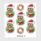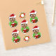 Set of seven cut-vinyl stickers with an illustration of a cute little happy smiling African American boy, who is dressed in Christmas clothes and is wearing a red Santa Claus hat, on a green background; five stickers of the boy and two stickers with a Christmas wreath