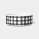 Cute rustic custom pet dog or cat bowl features farmhouse buffalo plaid check patterned background in black and white colours with double border.