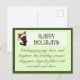 Spread cheer with our adorable holiday postcard featuring a cute cat holding a sign. The card comes with "Happy Holidays," but you can easily customise it to "Merry Christmas" or "Season's Greetings." The text "Wishing you joy, love, and laughter this holiday season! May your days be filled with warmth and cheer." is also customisable. Perfect as a simple, generic holiday card or as a charming addition to your Christmas greetings. Order now for a touch of whimsical fun!