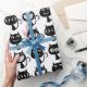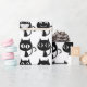 Cute black cat with different adorable expressions in classic black and white pattern.