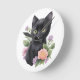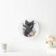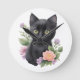 Cute Black Cat Floral Whimsical Round Clock