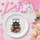 Cute Black Cat in a Witch's Hat Birthday Paper Plate