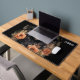 Desk mat with a cute illustration. A black long-haired cat wearing a black witch's hat. It's ears poking out. Surrounded by orange and brown autumn flowers. Perfect for cat lovers.