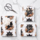 Wrapping paper sheets with a cute illustration. A black long-haired cat wearing a black witch's hat. It's ears poking out. Surrounded by orange and brown autumn flowers. Awesome design for witch themed items and Halloween.