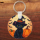 Cute Black Cat in Witch Hat Surrounded by Pumpkins Key Ring