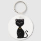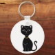 Cute smart black cat cartoon on white Keychain.
