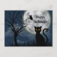 Cute Black Cat Owl Moon Graphic Halloween Postcard