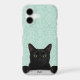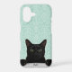 cute black cat peeking,funny kitty,pet animal lover,funny curious kitten peek,peaking animals say hello,girly pastel mint damask,girl who loves cats,green personalised customised initials,custom monogram name letters,blue personal initial letter