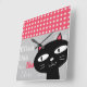 Cute Black Cat Pink Polka Dots Add Your Name Square Wall Clock