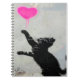 Cute Black Cat Playing with A Pink Heart Notebook