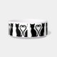 This adorable pet bowl features black cat silhouettes with their tails coming together in the shape of hearts.