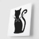 This square wall clock features a simple design with a sleek and slender black cat and is numberless. Makes a great gift for the cat lover.