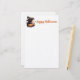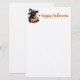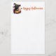 Cute Black Cat wearing a Witches Hat with Jack-o-lantern and Autumn Leaves Halloween Stationery