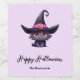 Cute Black Cat Wearing a Witch's Hat Halloween Wine Label