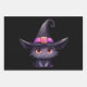 Cute Black Cat Wearing a Witch's Hat Wrapping Paper Sheet