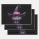 Wrapping paper sheets with a fun Halloween themed illustration for cat lovers. A big-eyed black cat wearing a large black witch's hat with a purplish pink belt around the brim.