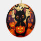 Cute Black Cat with Halloween Pumpkins Ceramic Ornament